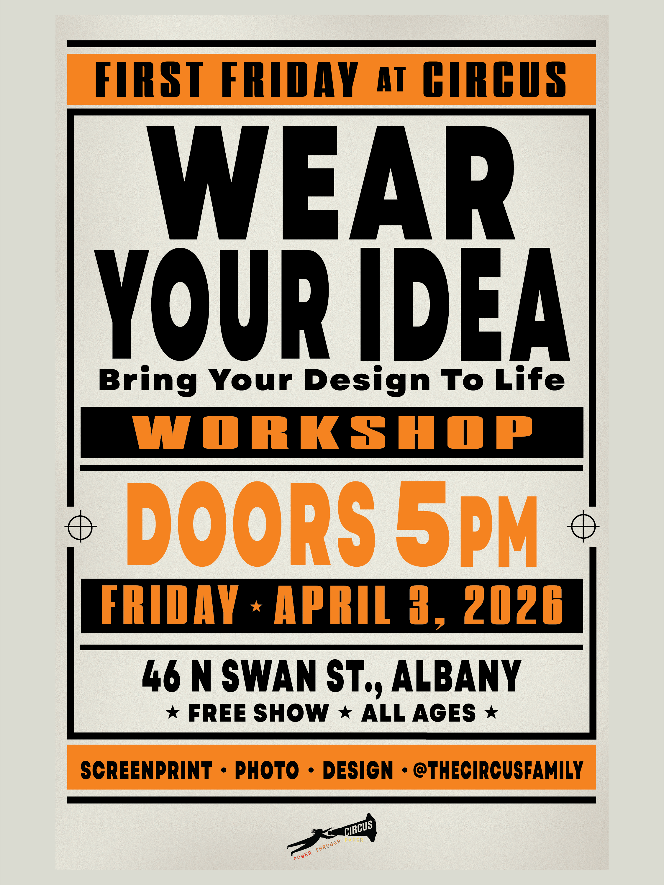 Join us for Wear Your Idea, a beginner-friendly First Friday workshop at Circus where we will explore how to turn sketches, phrases, and concepts into wearable art through screenprinting and transfer-based printing methods.